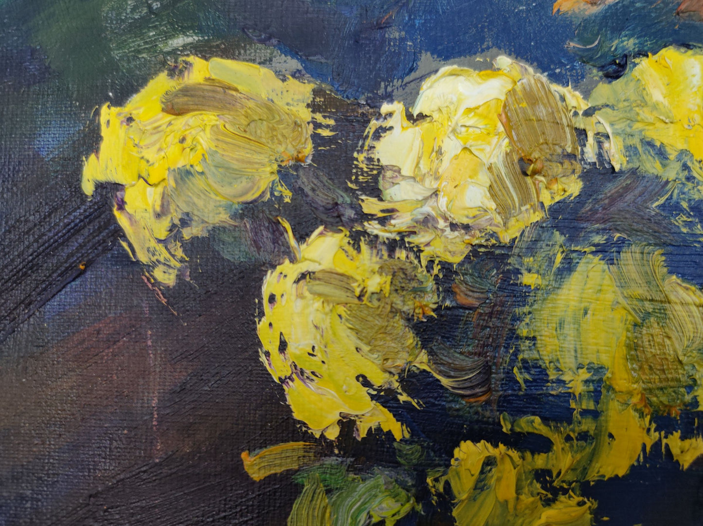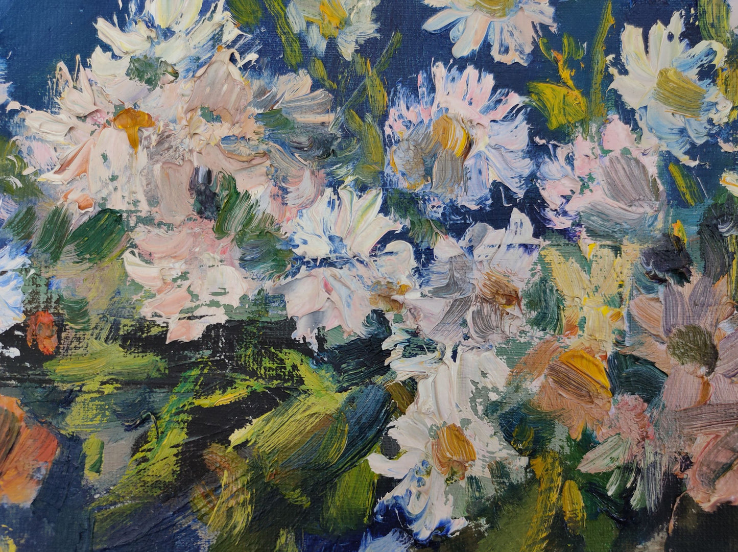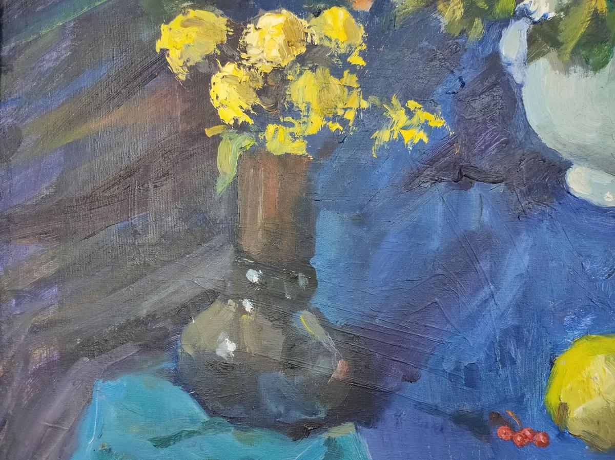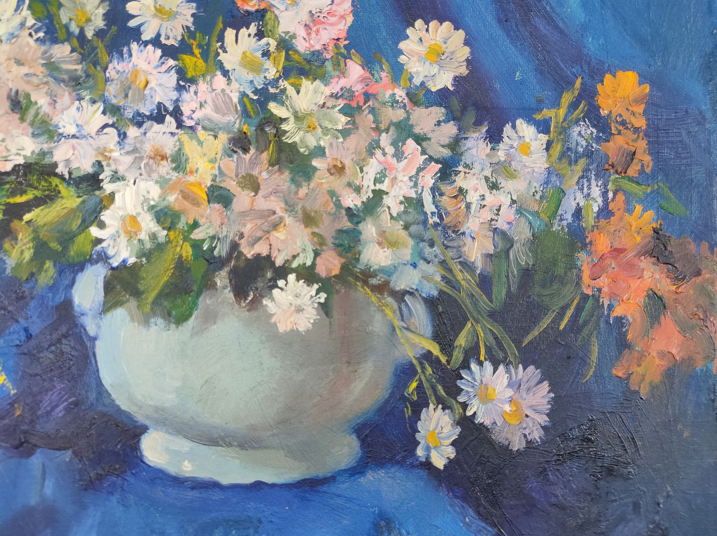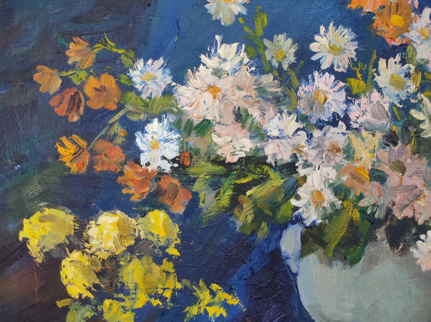 Oil painting Chrysanthemums on a blue background Mishurovsky V. V.