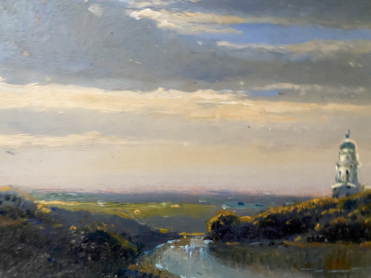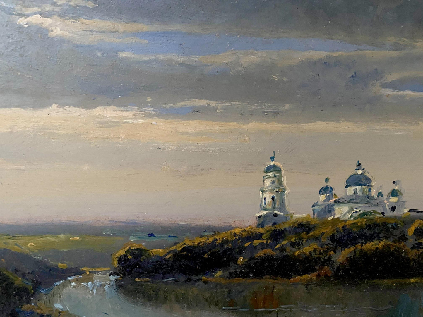 Oil painting "Monastery" embodies Litvinov's commitment to exploring themes of spiritual and architectural significance, offering art collectors and enthusiasts an opportunity to engage with a work that not only showcases artistic excellence but also evokes a deeper contemplation of the sacred and serene.
