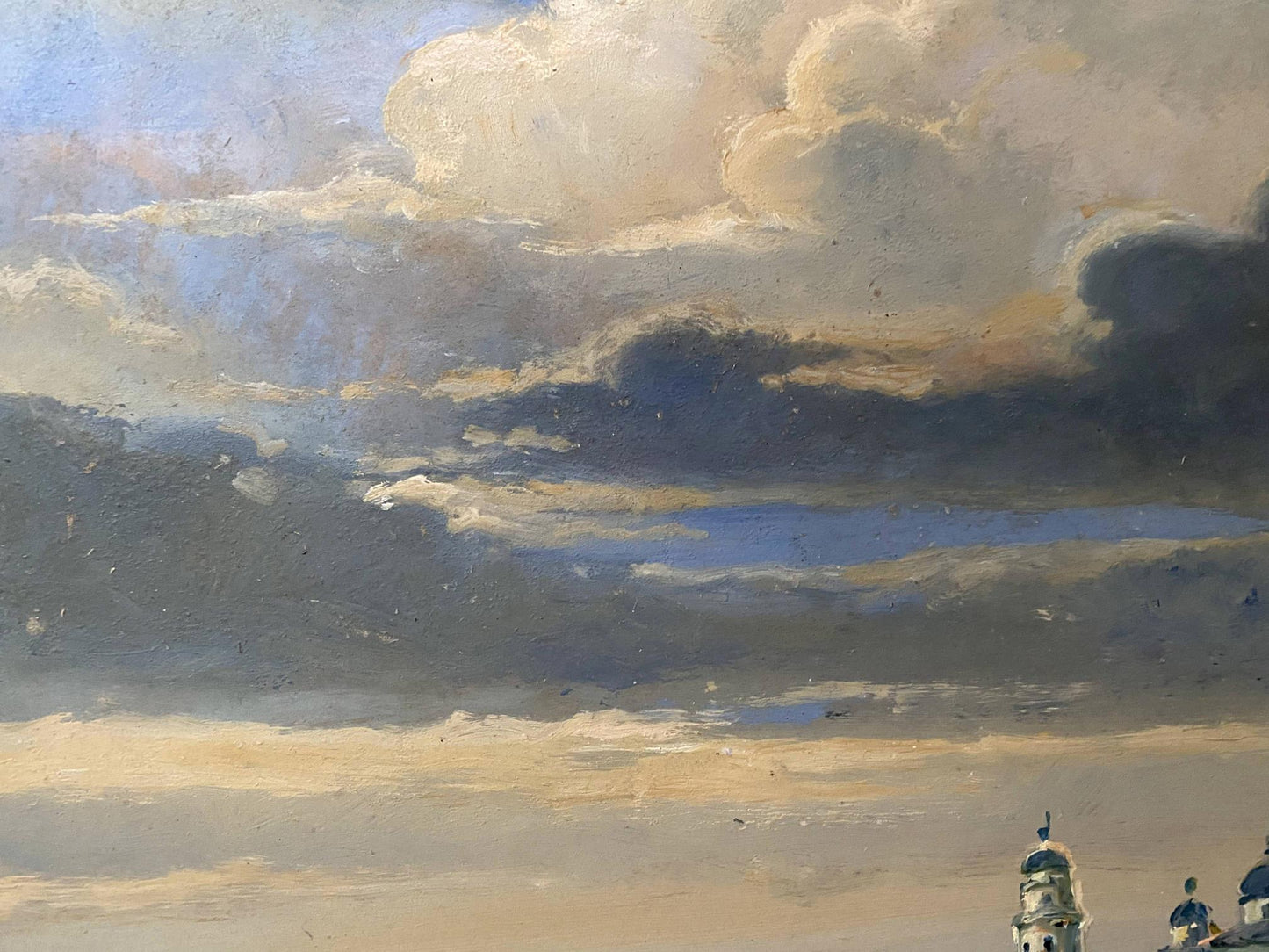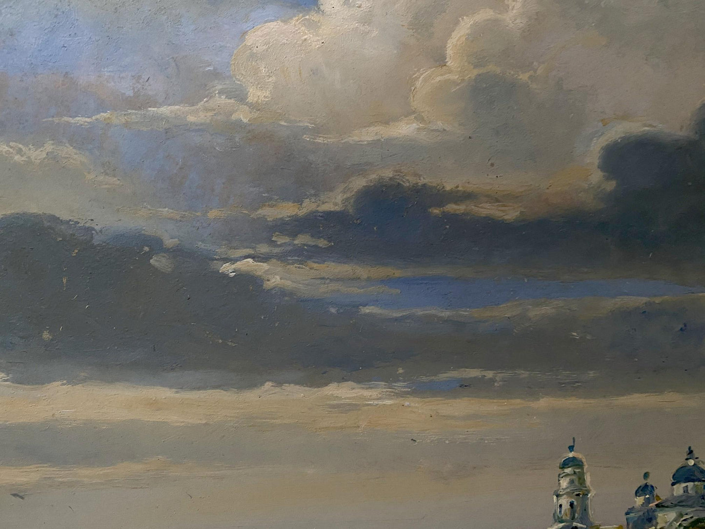 In oil painting "Monastery," Litvinov captures the architectural elegance and spiritual ambiance of a monastery, portrayed against a backdrop that evokes a sense of timeless tranquility. The painting is a testament to Litvinov's skill in conveying the profound serenity and devotion inherent to monastic life, inviting viewers to reflect on the values of peace, contemplation, and spirituality.