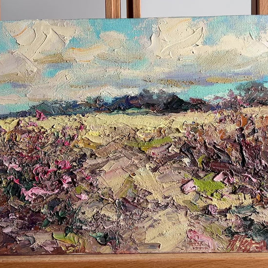 "The End of the Summer" by Alexander Cherednichenko captures the subtle beauty of a landscape in transition, as summer gracefully gives way to autumn. Cherednichenko uses a rich texture and a vibrant yet soft palette to depict a field filled with the last blooms of summer, set against a sky dotted with soft clouds. The slightly muted colors suggest the fading vibrancy of summer, signaling the arrival of the earthier tones of fall. This painting is a perfect addition to any Collection of Nature Landscapes or Collection of Summer Landscapes, offering a moment of reflection on the ever-changing seasons.
