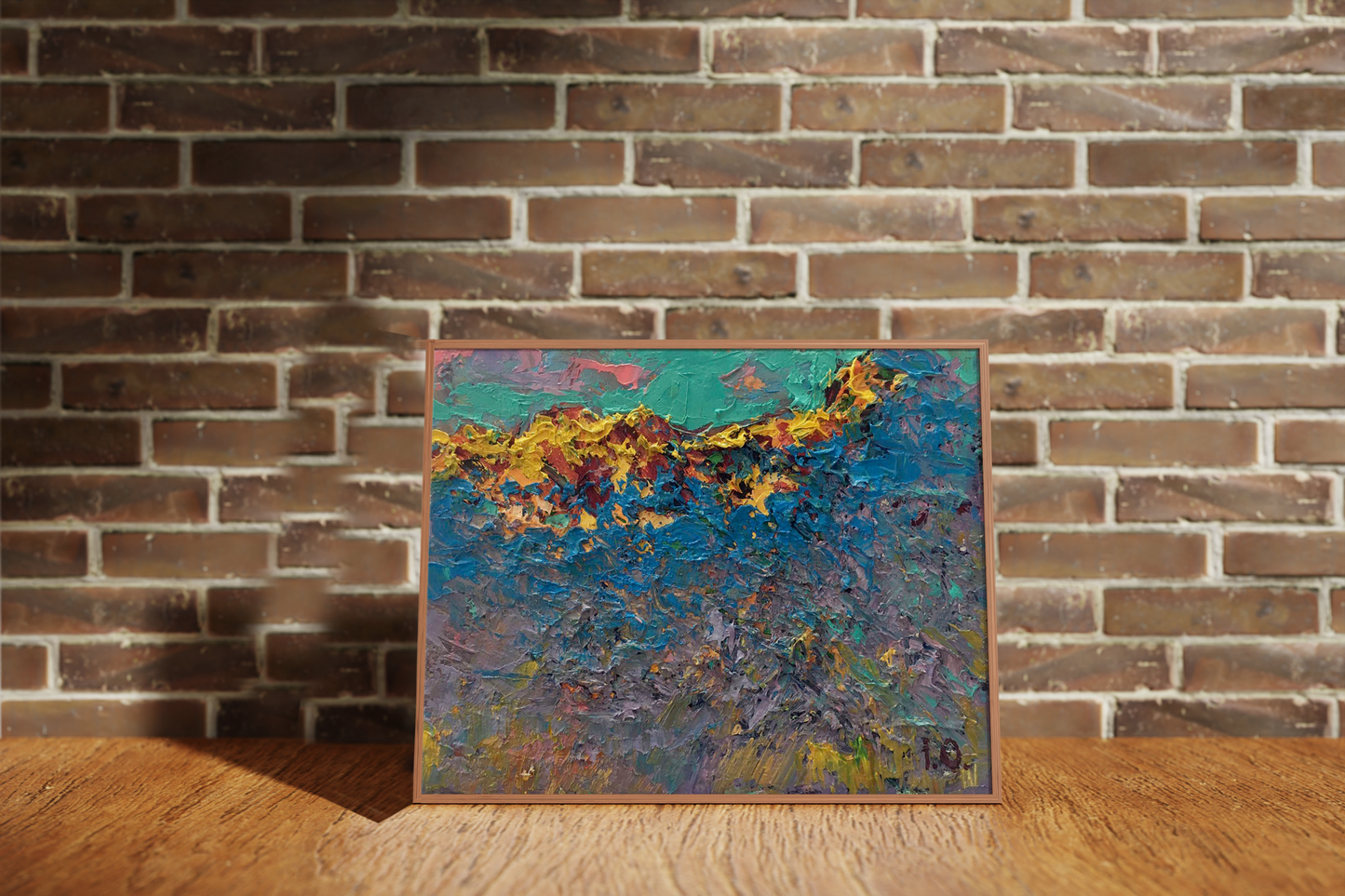 "The last ray" is an oil painting that captures the beauty of the sunset. The blue and yellow tones create a warm and inviting atmosphere, making it the perfect addition to your home décor. The painting is sure to bring a touch of elegance to any room.