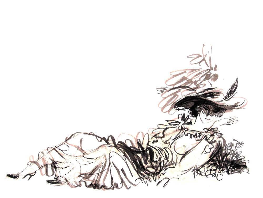 Style: Academic craft fused with free, expressive line; refined draftsmanship, fluid brushwork, and metaphoric imagery.