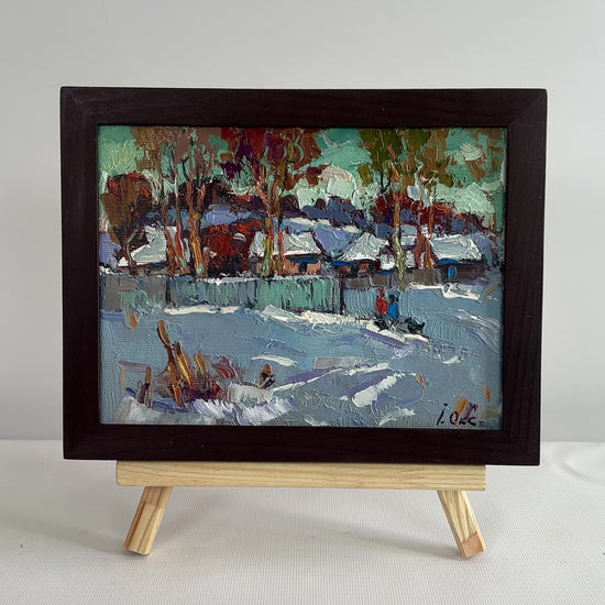 Oil painting The village was covered in snow Oksana Ivanyuk