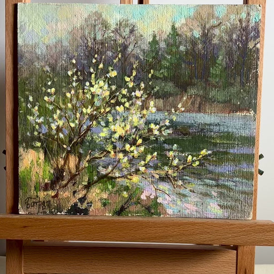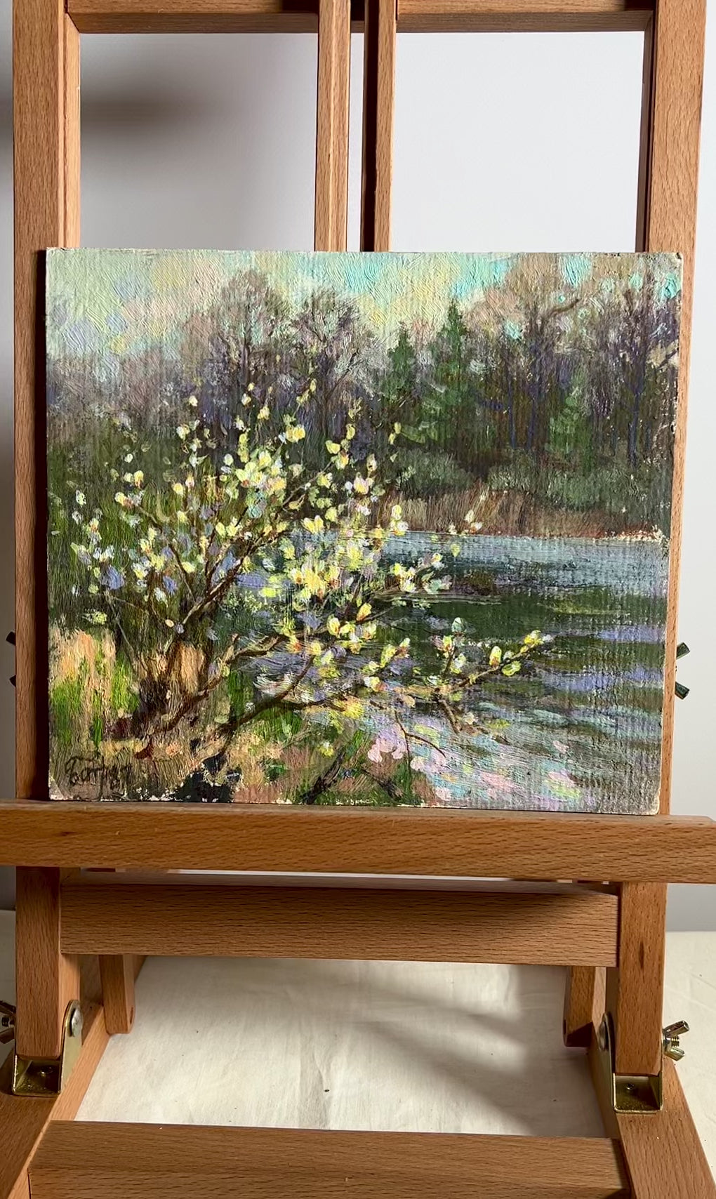Oil painting Willow blossoms over water Batrakov Vladimir Grigorievich