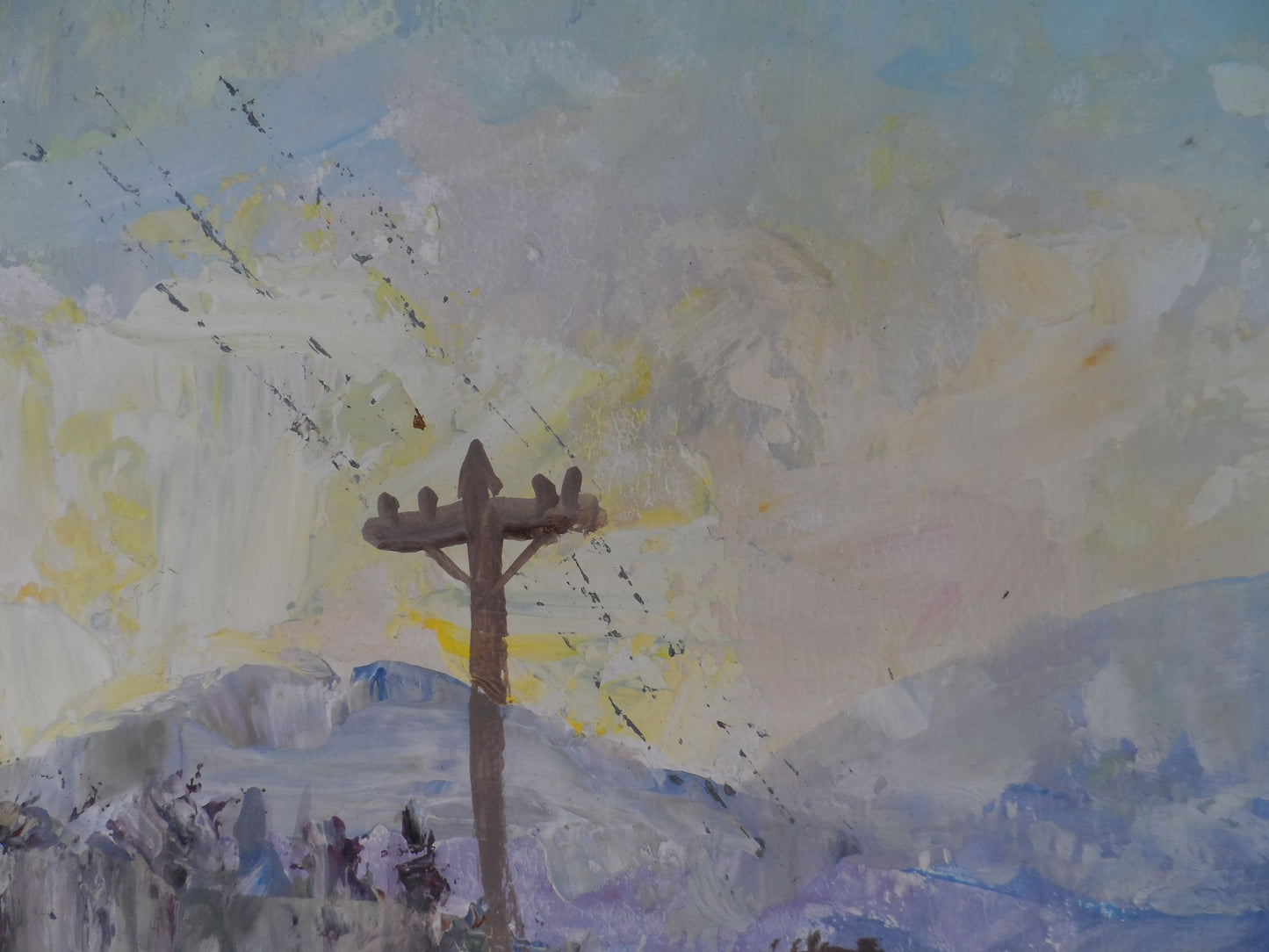 "Winter in Village" expresses the beauty and tranquility of rural life, emphasizing the stark beauty of winter and the resilience of village inhabitants. The warm hues of the sunset sky, the vibrant train carriage, and the glowing house lights juxtapose with the cool winter palette, infusing the scene with warmth and liveliness. Through this work, Myshurovsky invites viewers to appreciate the peaceful yet dynamic existence of a rural community thriving amid seasonal challenges, highlighting a close-knit community's ability to flourish in the face of adversity.