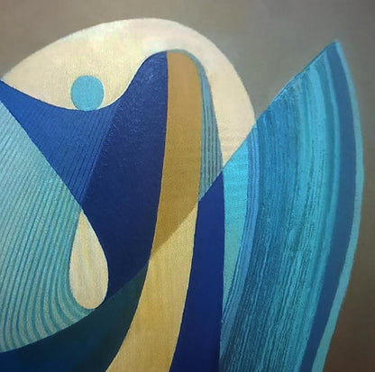 The artist likely aimed to express the harmonious interplay between structure and freedom, as the forms curve and overlap, suggesting fluidity within defined boundaries. The piece evokes themes of movement, reflection, and subtle tension between order and spontaneity. "Blue Sculpture" invites the viewer to explore these layered forms as an artistic meditation on balance, beauty, and transformation.