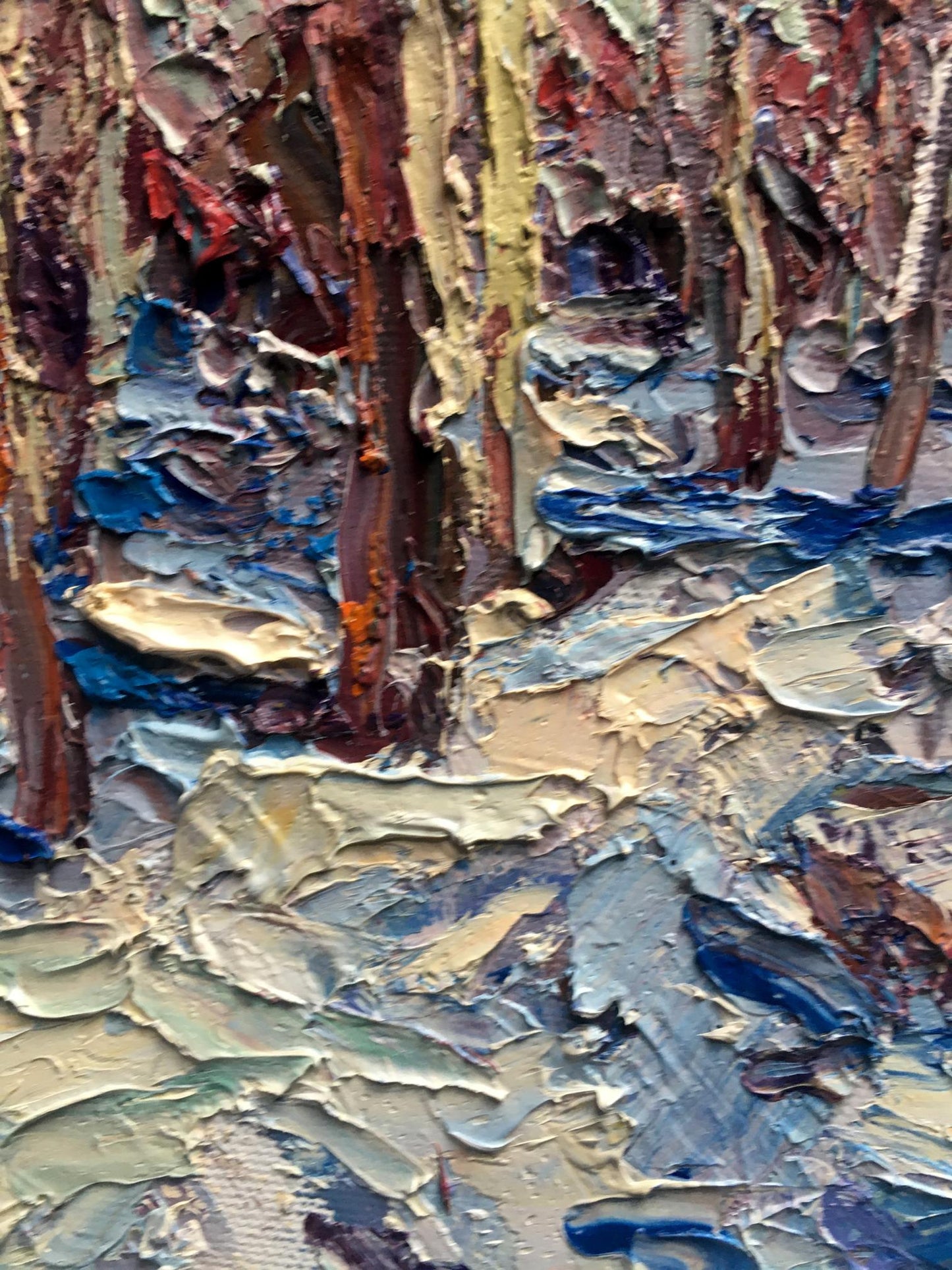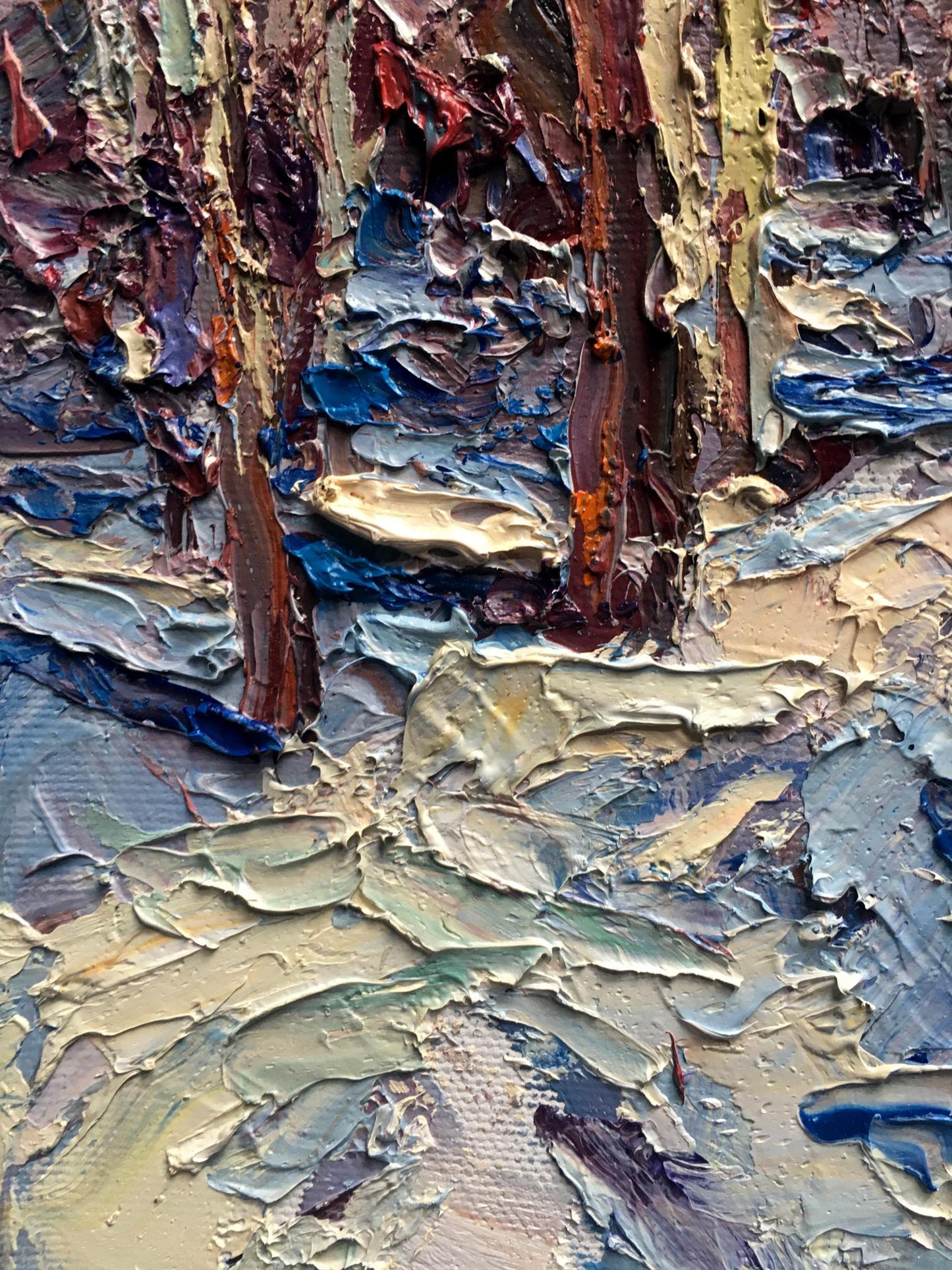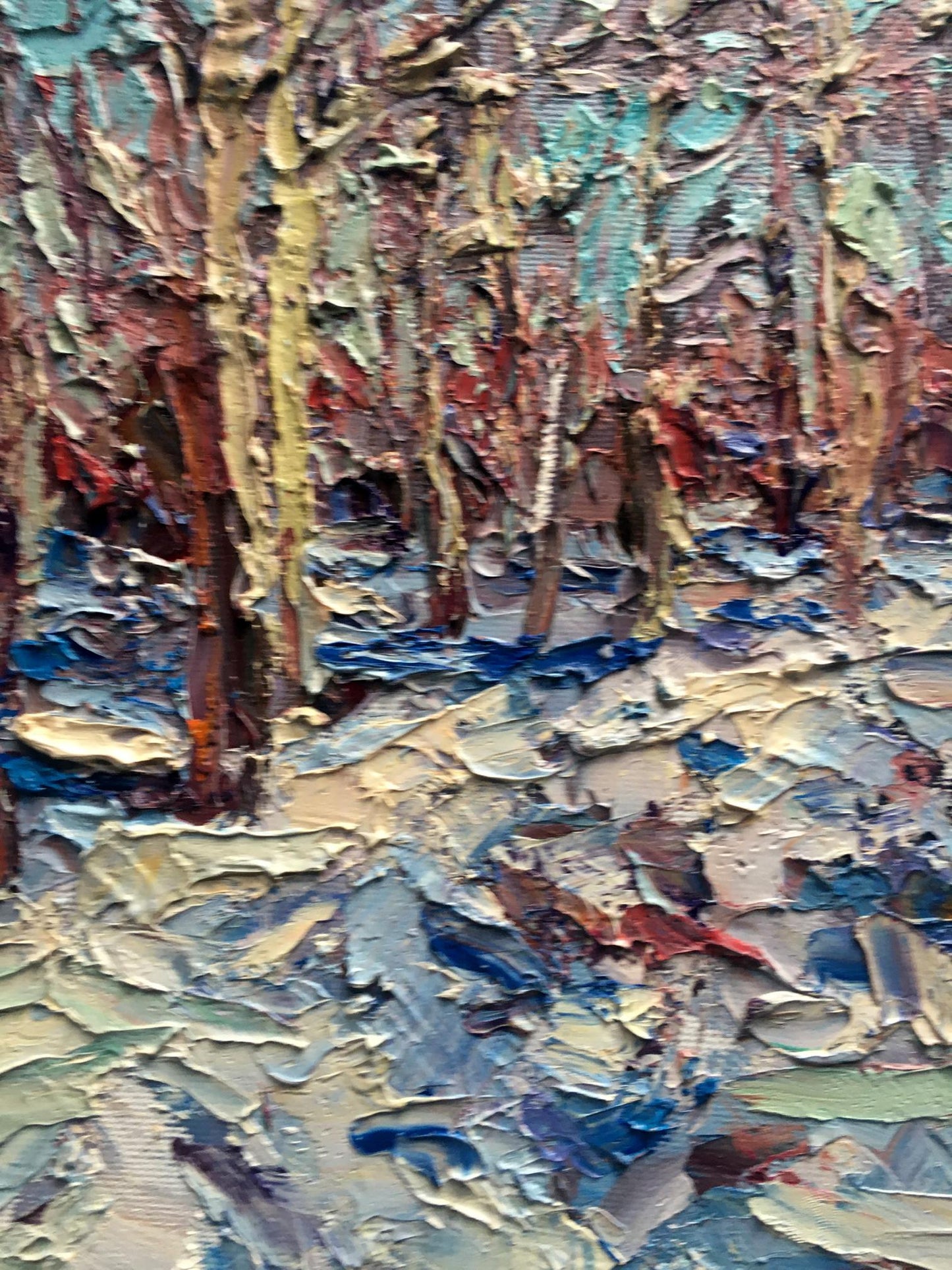 Cherednichenko's technique in "Forest Covered with Snow" is a testament to his skill in portraying the natural world. The contrast between the cool tones of the snow and the warmer hues of the trees suggests a balance between the cold of the season and the life that quietly persists beneath the surface. The thick brushstrokes add a tactile quality to the painting, drawing the viewer into the depth of the forest and encouraging a moment of calm introspection. This painting is an excellent choice for those looking to Buy a Oil painting that not only captures the beauty of nature but also evokes a deep sense of tranquility.