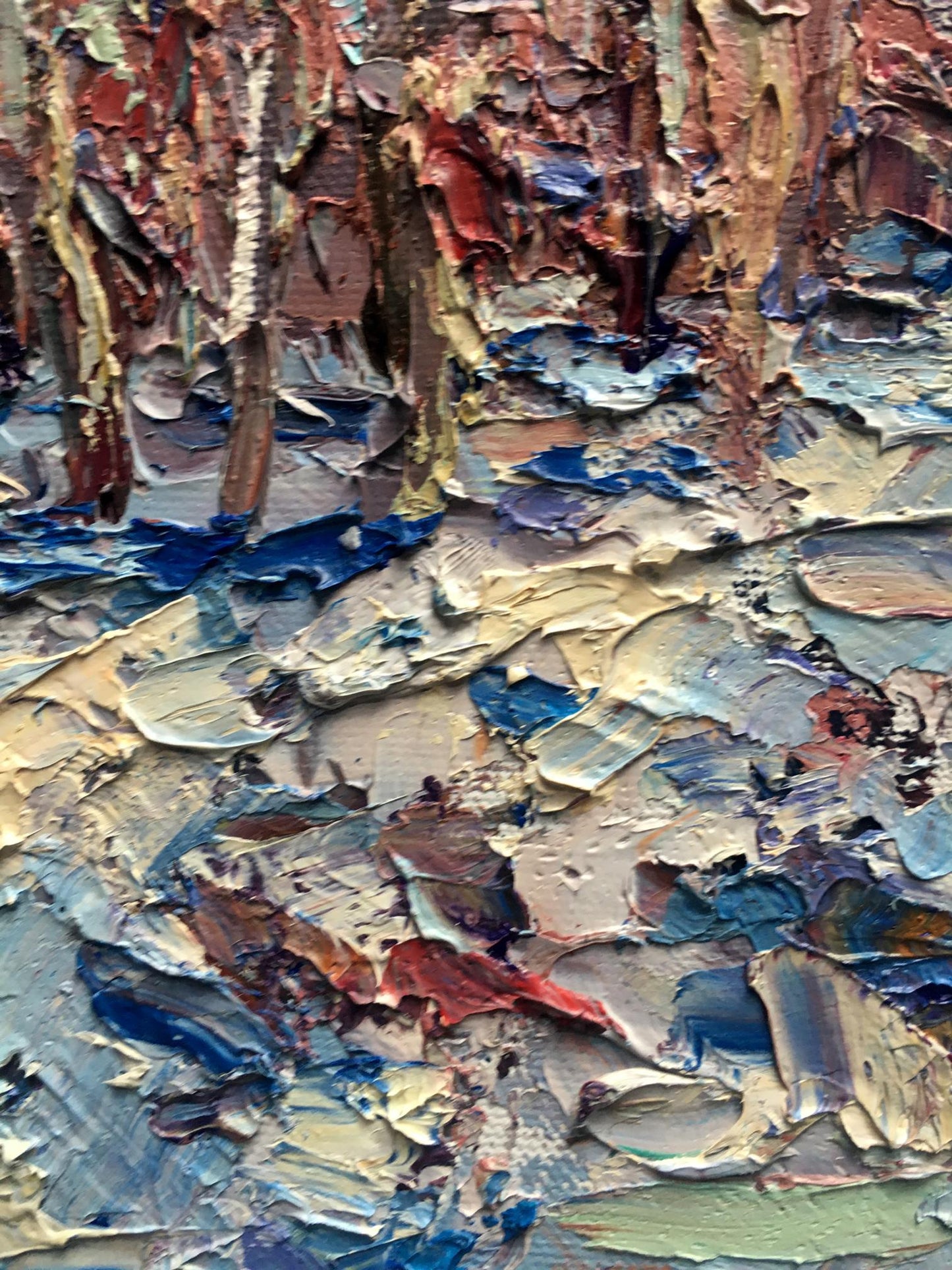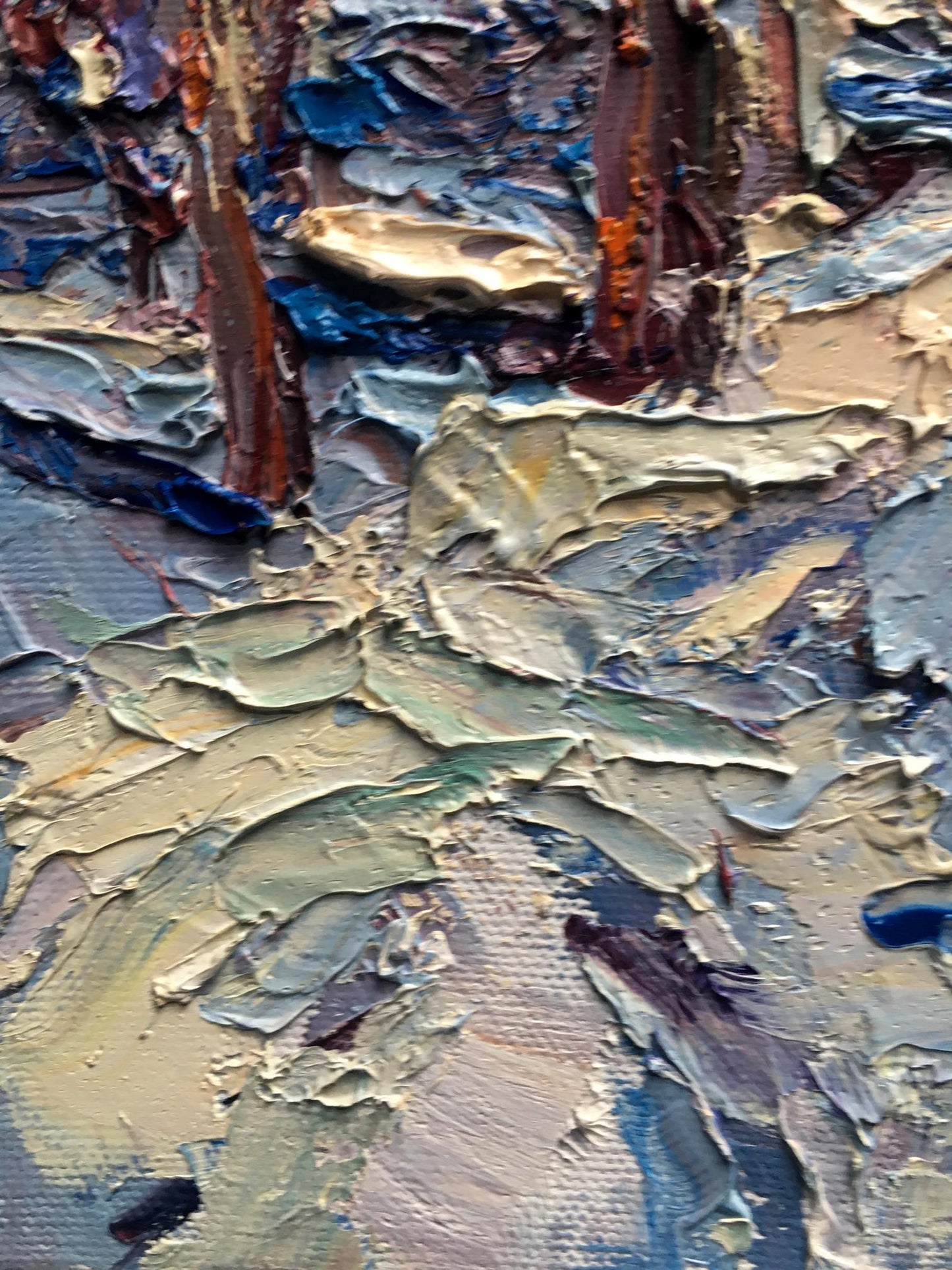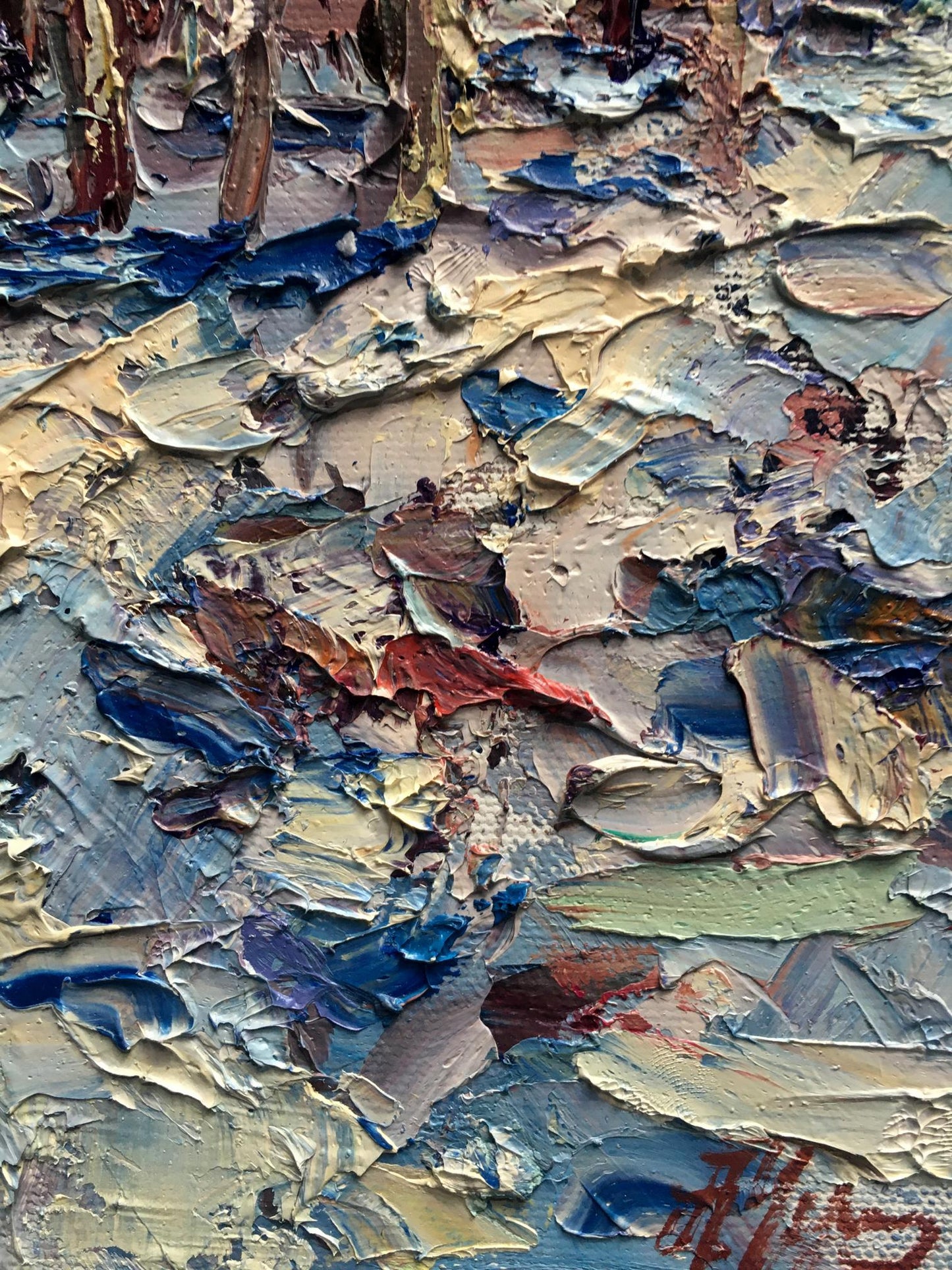 Cherednichenko's technique in "Forest Covered with Snow" is a testament to his skill in portraying the natural world. The contrast between the cool tones of the snow and the warmer hues of the trees suggests a balance between the cold of the season and the life that quietly persists beneath the surface. The thick brushstrokes add a tactile quality to the painting, drawing the viewer into the depth of the forest and encouraging a moment of calm introspection. This painting is an excellent choice for those looking to Buy a Oil painting that not only captures the beauty of nature but also evokes a deep sense of tranquility.