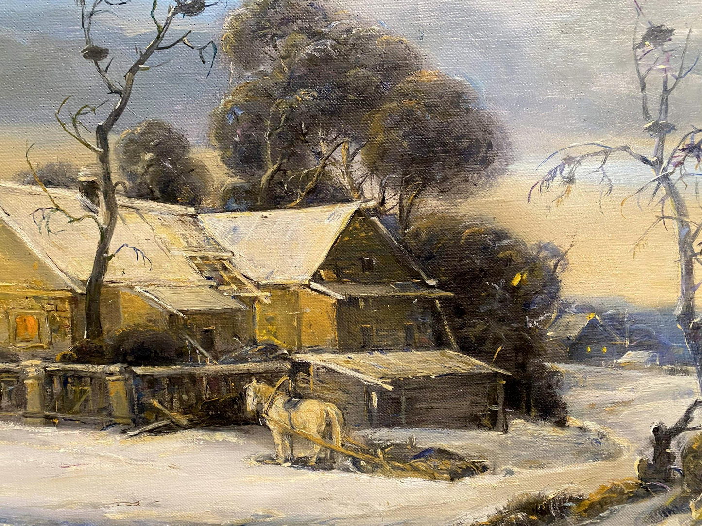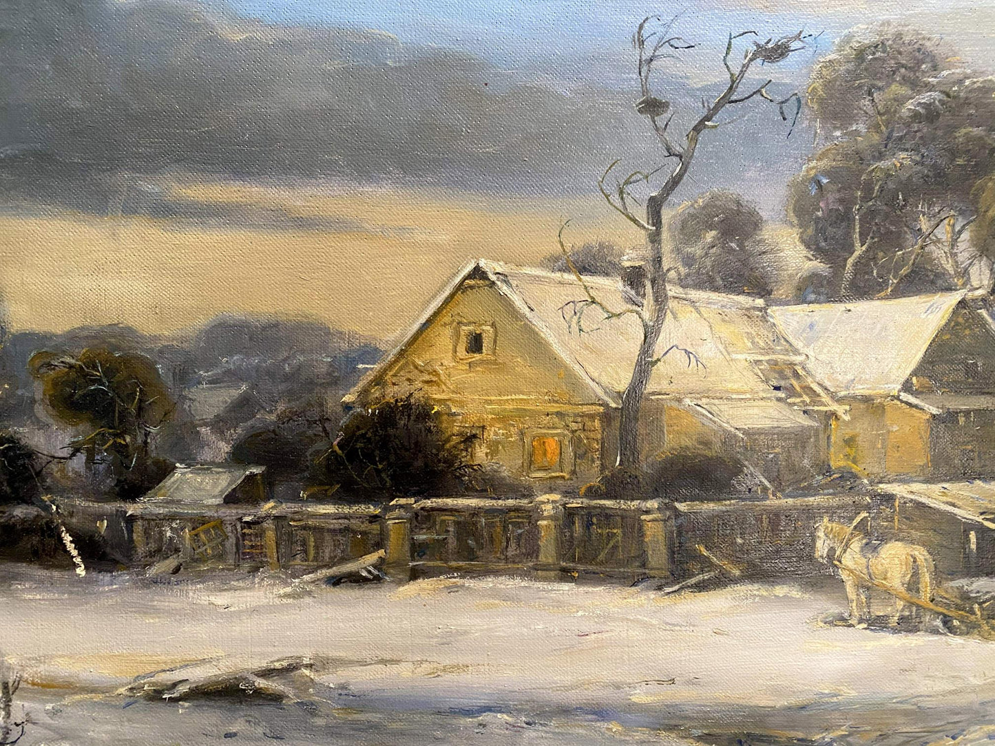 Titled "March Evening," this captivating oil painting is the creation of Oleg Arkad'yevich Litvinov. Measuring 85x44 cm (33.46x17.32 inches), this artwork invites viewers into a serene and tranquil scene bathed in the soft glow of twilight. "March Evening" is more than a landscape; it is a moment suspended in time, offering a window into the tranquil beauty of an evening at the cusp of seasons. Litvinov invites the viewer to a contemplative experience, encouraging a connection with the subtle, often overlooked transitions that define our world. There are other genres of painting in our catalog.