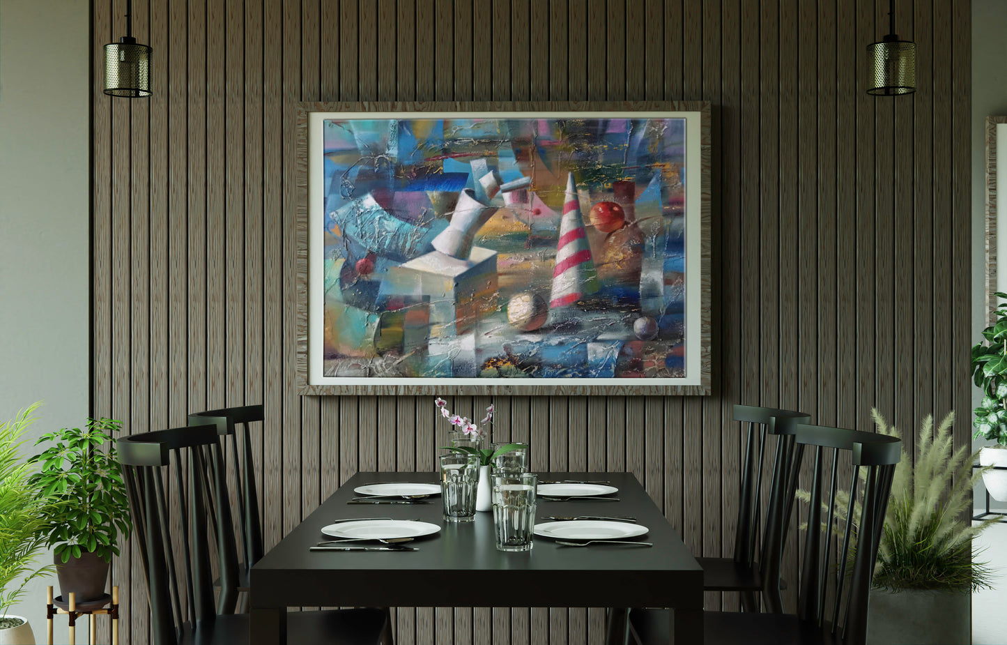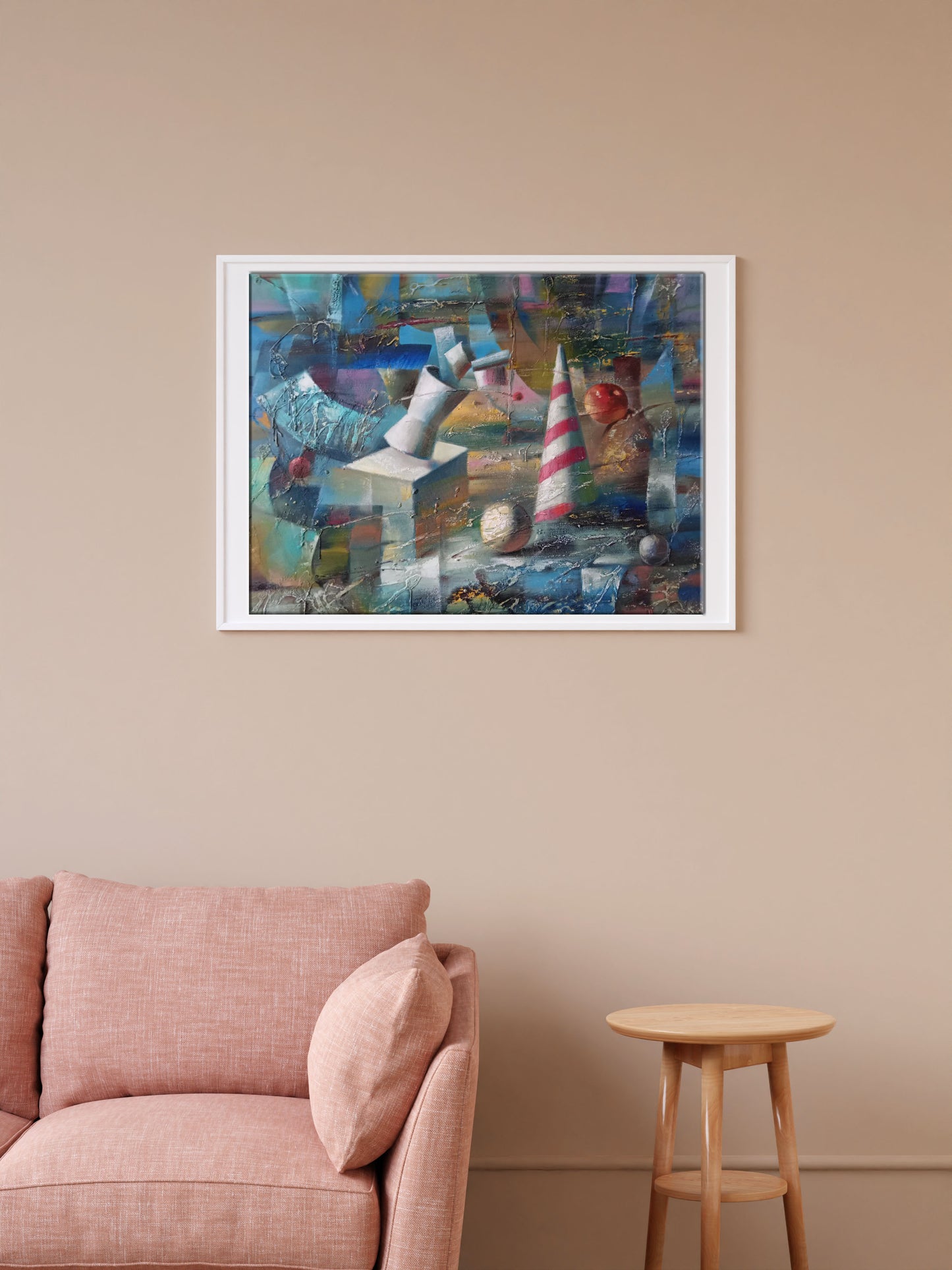 "Metaphysical Still Life" stands as a testament to the artist's exploration of abstract concepts, promising to ignite conversations and fuel debates among its admirers. It represents an exceptional addition to any collection, be it in a home or office setting, appealing to those who seek art that challenges the viewer's perception and invites deep reflection.