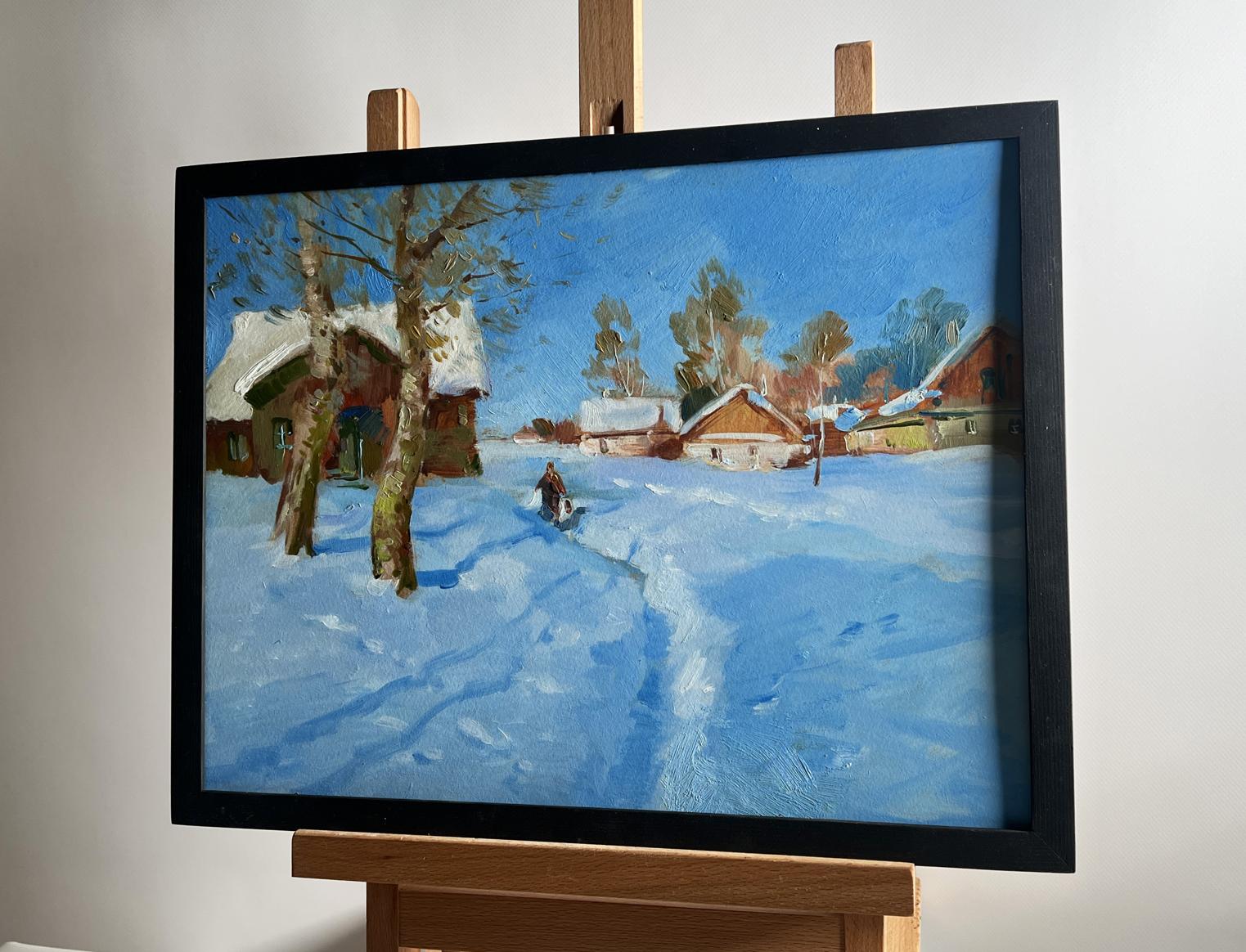 OIl painting Quiet village in winter Yuriy Suprunchuk