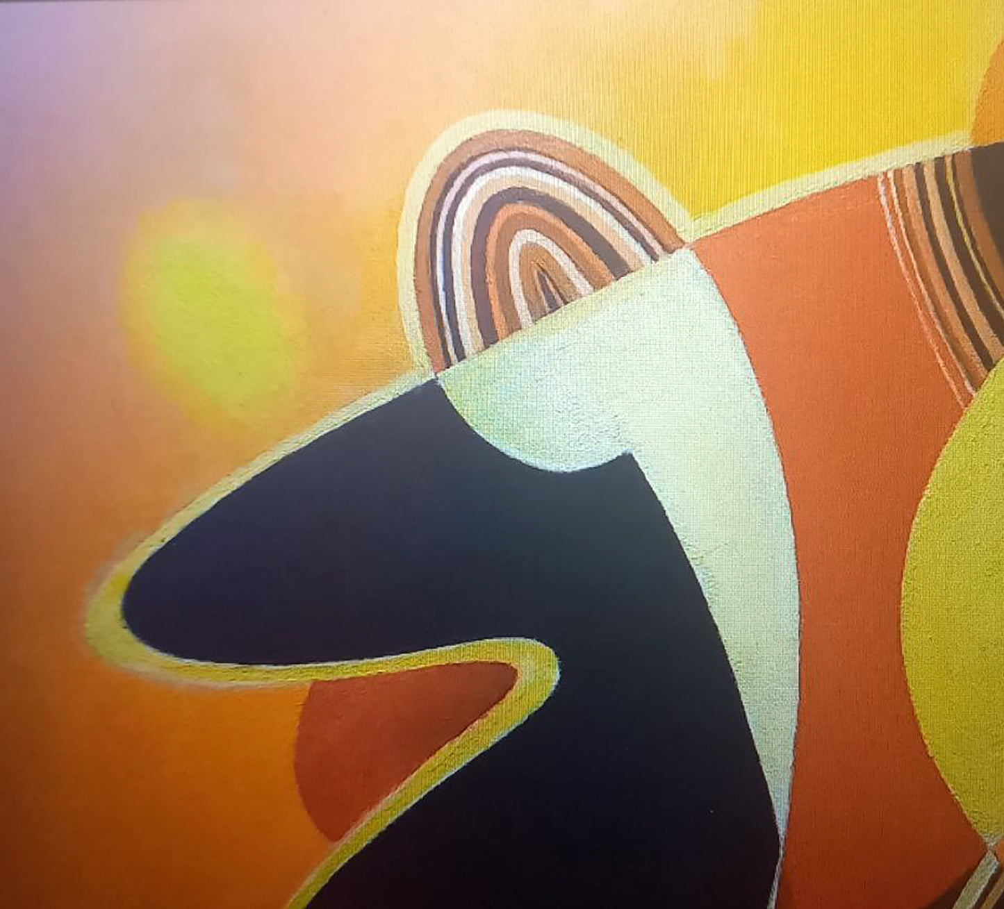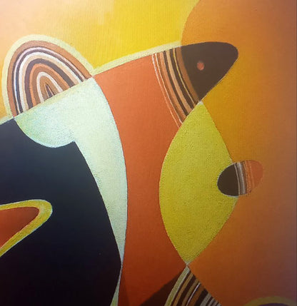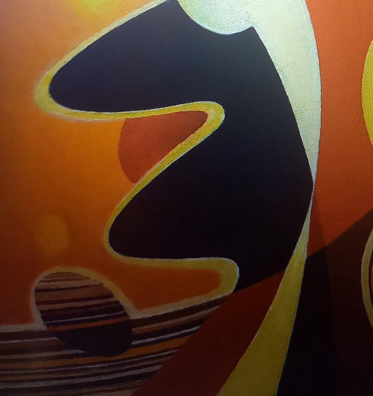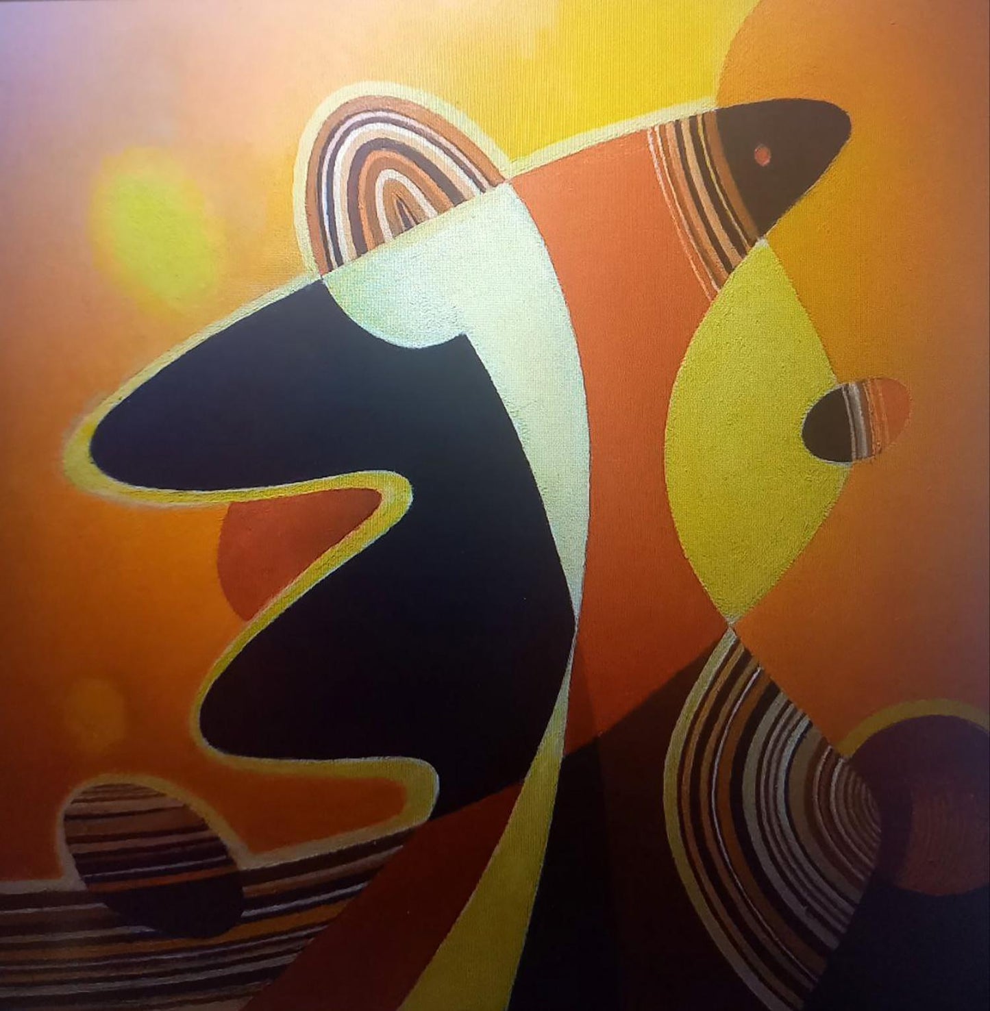 "Sunset" by Alexander Strashevich is an abstract exploration of the vibrant and warm hues often associated with the setting sun. Dominated by shades of orange, yellow, and deep black, the painting uses curving shapes and layered patterns to create a dynamic sense of movement and depth. The fluid lines and swirling forms capture the ephemeral nature of dusk, where colors blend and transition in harmony.